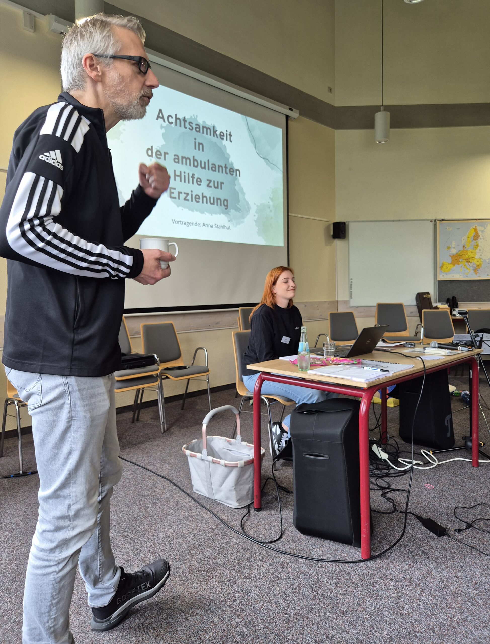 Neben dem Wissenszuwachs bot die Klausurtagung auch Raum für kollegialen Austausch und die Würdigung eines Dienstjubiläums. Seit 25 Jahren ist die Mitarbeiterin Sanda Kubat eine feste Größe im Schwerter Netz. In dieser Zeit hat sie zahlreiche unterschiedliche Aufgaben übernommen und immer mit viel Herzblut gearbeitet. Für dieses beeindruckende Engagement wurde sie im Rahmen der Klausurtagung geehrt. Kolleginnen und Kollegen bedankten sich mit Applaus und machten deutlich, wie sehr ihr Einsatz und sie selbst als Person geschätzt wird.
